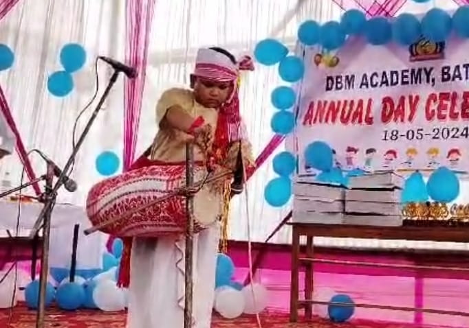 নগাঁৱৰ পৰা জয়ন্ত মুদৈ, ২১ মে’: অধিক সময় পাঠ্যপুথিৰ মাজত ব্যস্ত থকা অসমীয়া শিশু সকল এটি সংস্কৃতিৱান মন বা প্ৰতিভাৰ অধিকাৰী ৷ সেই কথা সময়ে সময়ে প্ৰতিপন্ন কৰি আহিছে একাংশ নগঞা শিশুয়ে ৷ এইবাৰ এনে এক প্ৰতিভাৰ উমান পোৱা গ’ল মহাপুৰুষ শ্ৰীমন্ত শংকৰদেৱ গুৰুজনাৰ জন্মভূমি বটদ্ৰৱাৰ এটি শিশুৰ ক্ষেত্ৰত ৷ কিয়নো এই শিশুটিয়ে সুন্দৰকৈ পৰিবেশন কৰা দেখা গ’ল অসমীয়াৰ স্বভিমান বিহুৰ অন্যতম উপাদান ঢোল বাদন ৷ এই শিশুটি হৈছে বটদ্ৰৱাৰ সাংস্কৃতিৱান ব্যক্তি তথা অৱসৰী শিক্ষক তুৱাৰাম বৰুৱাৰ পুত্ৰ নিবিৰ নয়না বৰুৱা ৷ স্থানীয় দময়ন্তী বালা মেমৰিয়েল ইংলিছ একাডেমীৰ পঞ্চম শ্ৰেণীৰ কনমানী ছাত্ৰ নিবিৰে পঢ়া-শুনাৰ সমান্তৰালকৈ অব্যাহত ৰাখিছে ঢোল বাদনৰ সাধনা ৷ এই কনমানী শিশুটিয়ে শেহতীয়াকৈ নিজৰ অধ্যয়নৰত শিক্ষানুষ্ঠানখনত আয়োজিত বাৰ্ষিক দিৱসৰ সাংস্কৃতিক অনুষ্ঠানত সুন্দৰকৈ ঢোল বাদন কৰি উপস্থিত সকলোকে বেছ আপ্লুত কৰিবলৈ সক্ষম হয় ৷