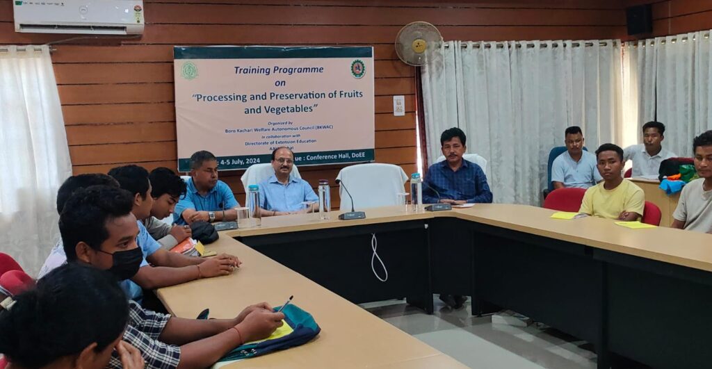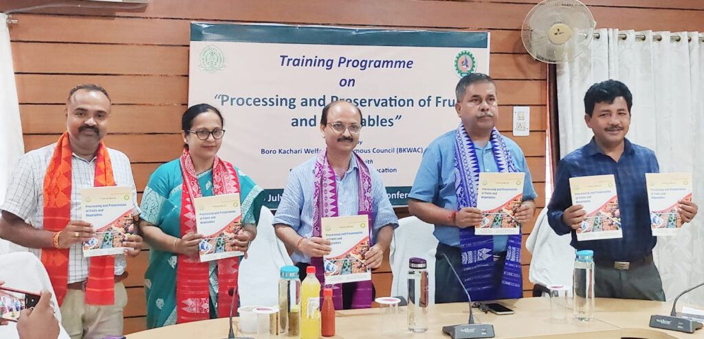 যোৰহাট, ৫ জুলাইঃ বড়ো কছাৰী কল্যাণ স্বায়ত্তশাসিত পৰিষদে অসম কৃষি বিশ্ববিদ্যালয়ৰ সহযোগিতাত অনুষ্ঠিত কৰা ফলমূল আৰু শাক-পাচলি সংৰক্ষণ আৰু প্ৰক্ৰিয়া কৰণৰ দুদিনীয়া প্ৰশিক্ষণৰ আজি সামৰণি পৰে। বড়ো কছাৰী কল্যাণ স্বায়ত্তশাসিত পৰিষদৰ পুঁজিৰে বড়ো কছাৰী কল্যাণ স্বায়ত্বশাসিত পৰিষদৰ এলেকাৰ ২০ গৰাকী প্ৰশিক্ষাৰ্থীয়ে অংশগ্ৰহণ কৰা এই প্ৰশিক্ষণত ফল-মূল আৰু শাক-পাচলি সংৰক্ষণৰ গুৰুত্ব আৰু ই কেনেকৈ বড়ো কছাৰী