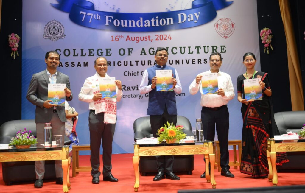 যোৰহাট, ১৬ আগষ্টঃ অসম কৃষি বিশ্ববিদ্যালয়ৰ অন্তৰ্গত কৃষি মহাবিদ্যালয়, যোৰহাটৰ ৭৭ সংখ্যক প্ৰতিষ্ঠা দিৱস আজি পালন কৰা হয়। বিশ্ববিদ্যালয়ৰ যোৰহাটস্থ মুল চৌহদত আয়োজিত এই কাৰ্যসূচীত পুৱা স্মৃতি তৰ্পণেৰে কাৰ্যসূচীৰ শুভাৰম্ভ কৰে বিশ্ববিদ্যালয়ৰ উপাচাৰ্য ড০ বিদ্যুৎ চন্দন ডেকাই। পতাকা উত্তোলন কৰে কৃষি মহাবিদ্যালয়ৰ বিজ্ঞান গুৰু ড০ প্ৰসন্ন কুমাৰ পাঠকে। প্ৰতিষ্ঠা দিৱসৰ কাৰ্যসূচীত মুখ্য অতিথি হিচাপে অংশগ্ৰহণ
