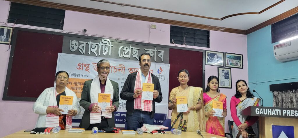 নিউজ ডেস্কঃ গুৱাহাটী প্ৰেছ ক্লাবত শনিবাৰে এক মনোজ্ঞ গ্ৰন্থ উন্মোচনী অনুষ্ঠান সম্পন্ন হয়। এই গ্ৰন্থ উন্মোচনী অনুষ্ঠানত ড০ পৰিণীতা বৰাৰ ‘নব্য মাধ্যমত সাহিত্যঃ তত্ত্ব আৰু বিচাৰ’ শীৰ্ষক প্ৰথমখন নব্য মাধ্যমত সাহিত্য সম্পৰ্কীয় গ্ৰন্থ উন্মোচন কৰা হয়। গ্ৰন্থখন আনুষ্ঠানিকভাৱে উন্মোচন কৰে, সাহিত্য-সমালোচক, নিৱন্ধকাৰ তথা গুৱাহাটী বিশ্ববিদ্যালয়ৰ ইংৰাজী বিভাগৰ অধ্যাপক ড- বিভাস চৌধুৰী, লেখক, চিন্তাবিদ, সুবক্তা ময়ূৰ