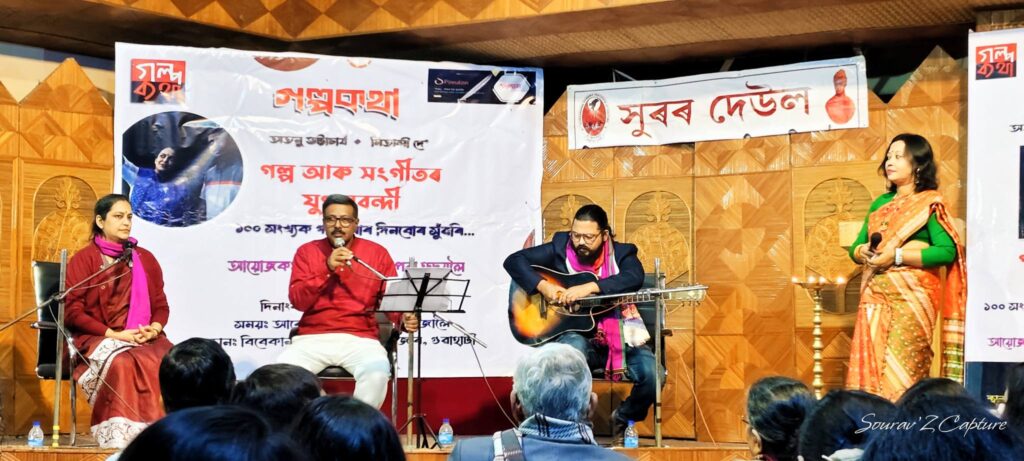 গুৱাহাটী, ২৭ জানুৱাৰীঃ অসমীয়া ভাষা-সাহিত্য, সংস্কৃতি আৰু সমাজসেৱাত উৎসৰ্গিত চৰকাৰী পঞ্জীয়নভুক্ত স্বেচ্ছাসেৱী অনুষ্ঠান ‘স্পন্দন… শব্দৰ পৰা হৃদয়লৈ’ৰ উদ্যোগত আৰু ‘সুৰৰ দেউল’ৰ সহযোগত ২৬ জানুৱাৰী দেওবাৰে উজান বজাৰৰ বিবেকানন্দ কেন্দ্ৰৰ প্ৰেক্ষাগৃহত ‘১০০ সংখ্যক গল্পকথাৰ দিনবোৰ সুঁৱৰি’ শীৰ্ষক এক বিশেষ অনুষ্ঠানৰ আয়োজন কৰা হয়। বিশিষ্ট কবি, লেখক অতনু ভট্টাচাৰ্য আৰু বিশিষ্ট শাস্ত্ৰীয় সংগীত শিল্পী মিতালি দে’ৰ গল্প