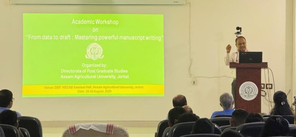 যোৰহাট, ২৯ আগষ্টঃ অসম কৃষি বিশ্ববিদ্যালয়ৰ স্নাতকোত্তৰ শিক্ষা সঞ্চালকালয়ৰ উদ্যোগত “তথ্যৰ পৰা খচৰালৈ: শক্তিশালী পাণ্ডুলিপি লিখা আয়ত্ত কৰা” শীৰ্ষক এখন দুদিনীয়া শৈক্ষিক কৰ্মশালা আজিৰে পৰা আৰম্ভ হৈছে। অসম কৃষি বিশ্ববিদ্যালয়, ডিবিটি- নিকেব চেমিনাৰ হলত আয়োজিত কৰ্মশালাখন মুকলি কৰে অসম কৃষি বিশ্ববিদ্যালয়ৰ উপাচাৰ্য ড০ বিদ্যুৎ চন্দন ডেকাই। ভাষণ প্ৰসংগত উপাচাৰ্য গৰাকীয়ে সঠিকভাৱে তথ্য আহৰণ কৰি ইয়াৰ
