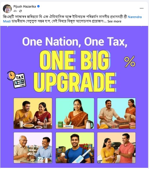 তেওঁ উল্লেখ কৰে যে #NextGenGST ভৱিষ্যৎ প্ৰজন্মৰ কথা চিন্তা কৰি ঘোষণা কৰা হৈছে। এই সকলোবোৰ পদক্ষেপৰ প্ৰভাৱ সুদূৰপ্ৰসাৰী হ’ব আৰু দেশৰ অৰ্থনৈতিক গঠনত এক নতুন গতি প্ৰদান কৰিব।