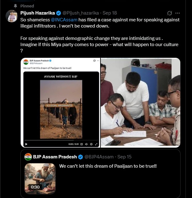 🔹অবৈধ অনুপ্ৰৱেশকাৰীৰ বিৰুদ্ধে কথা কোৱাৰ বাবে কংগ্ৰেছে মোৰ বিৰুদ্ধে গোচৰ ৰুজু কৰিছেঃ মন্ত্ৰী পীযুষ হাজৰীকা